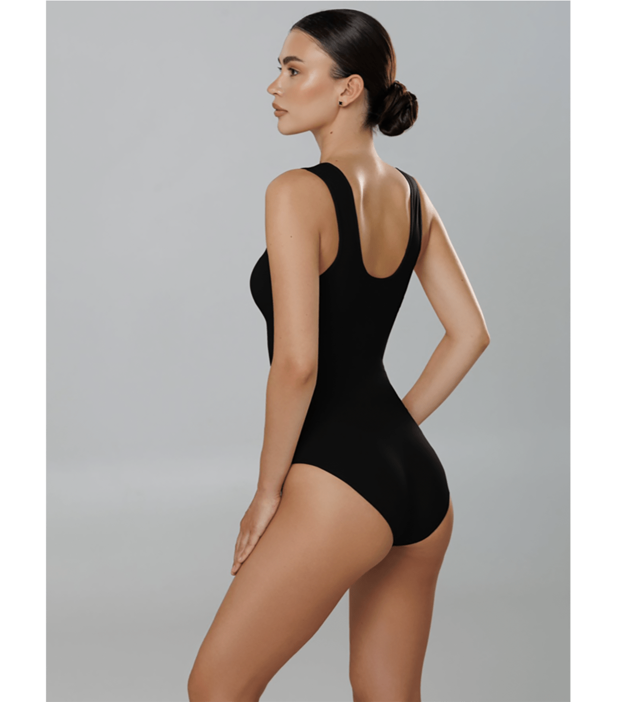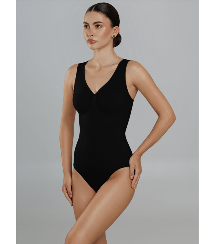 Коригуюче боді з трусиками сліпами на кнопках та широкими бретелями.