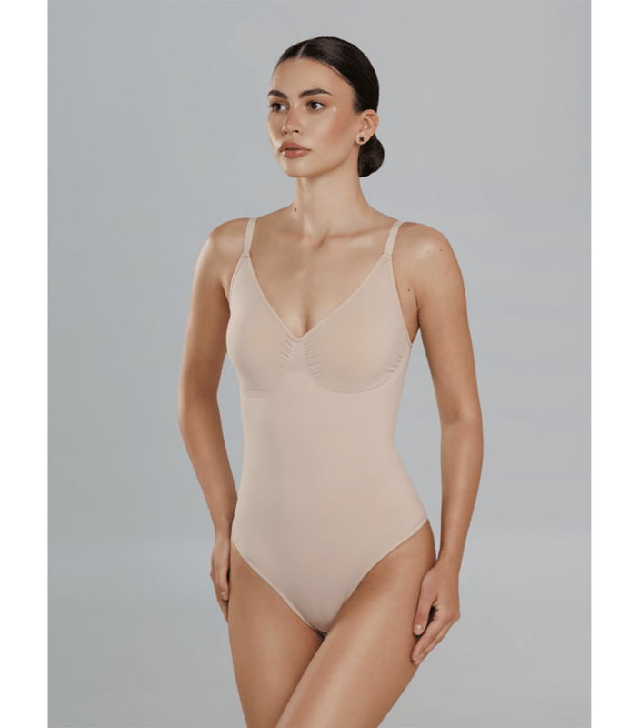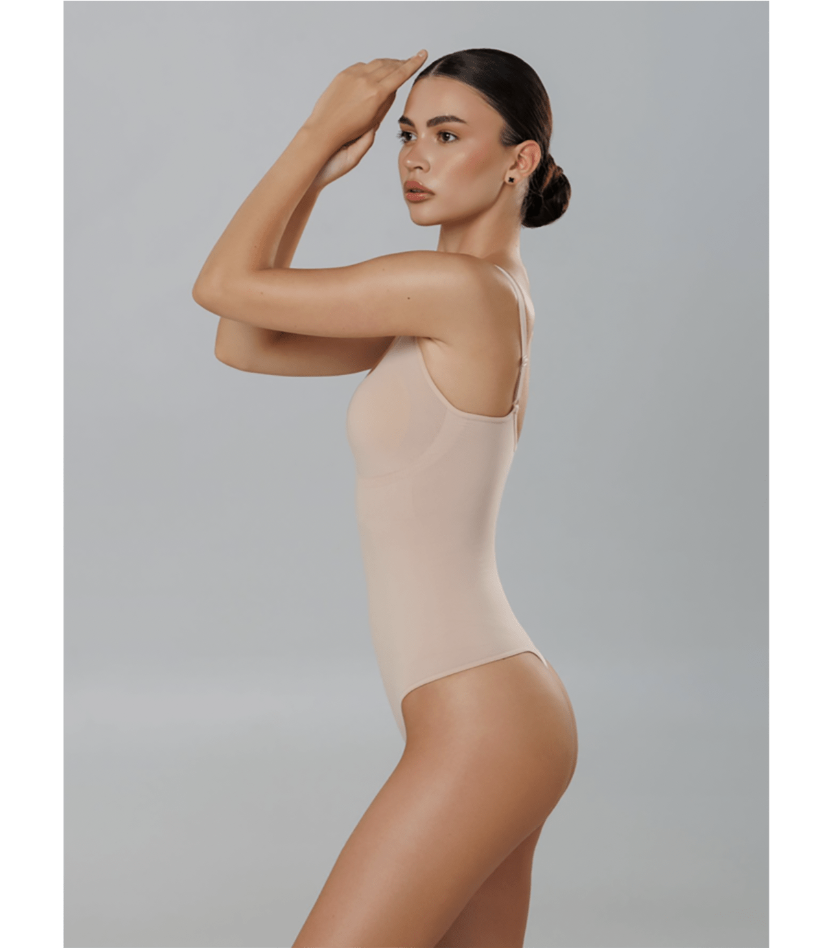 Коригуюче боді з трусиками стрінгами на кнопках та регульованими бретелями..
