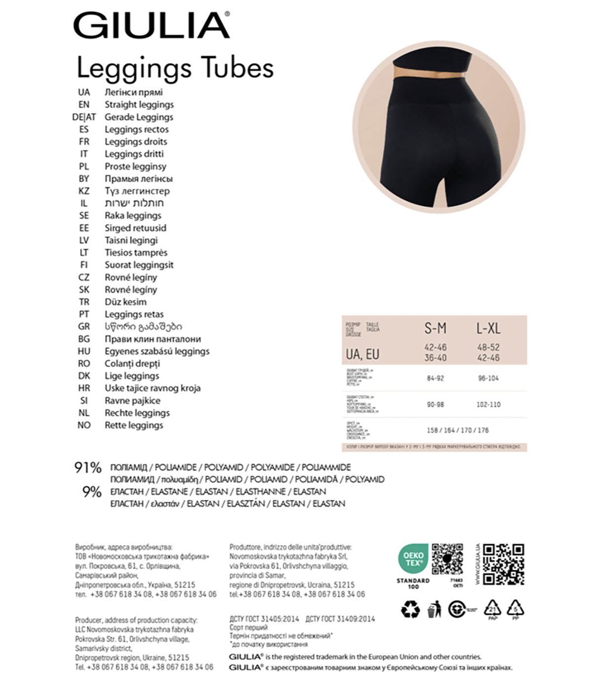 Cклад: 91% - поліамід, 9% - еластан