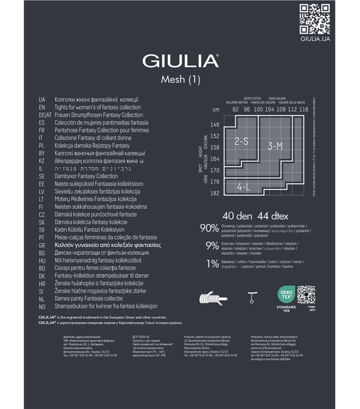 Состав: 90% - полиамид, 9% - эластан, 1% - хлопок